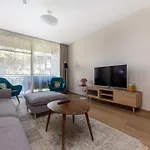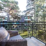 Een ingerichte keuken met een waterkoker, een oven en keukengerei is beschikbaar als onderdeel van de zelfvoorzienende voorzieningen van het appartement. Het is gesitueerd op circa 10-minuten loopafstand Pirtis bushalte.